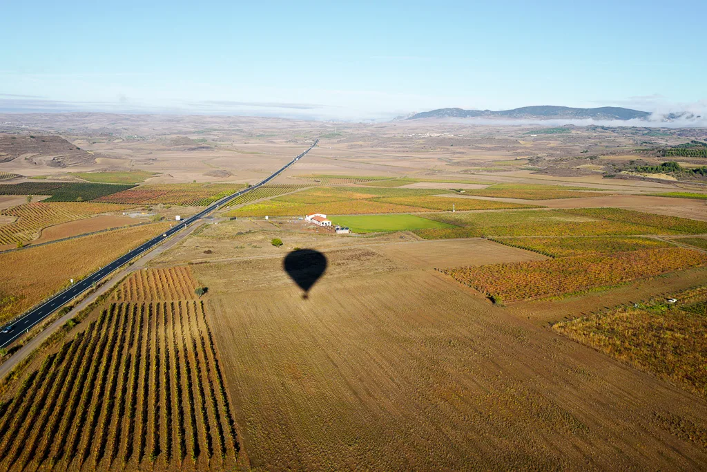 Når man kjører rundt i La Rioja vil man se vinmarker på alle kanter. For å få et skikkelig overblikk kan jeg anbefale deg å melde deg på ballongferd. Å sveve over vinmarkene i Rioja Alta en tidlig morgen er en opplevelese av de sjeldne. Arcoiris er et firma som driver med dette.