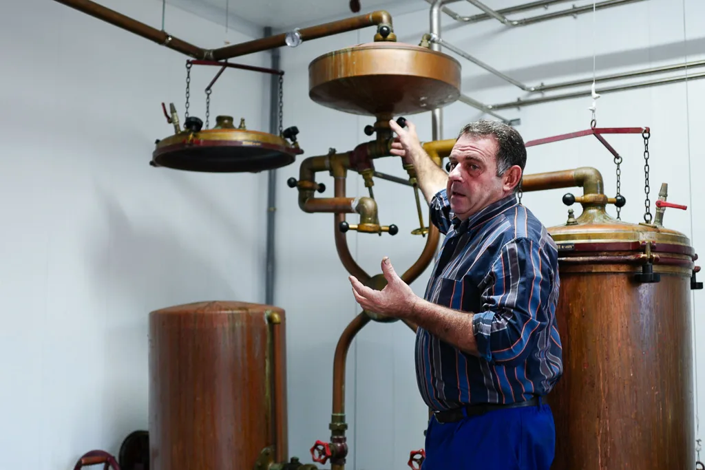 I denne svært lille landsbyen bor og jobber Ricardo Ayala, naboen til Fernando. Han lager Orujo – druebrennevin laget på kvister og grener fra vinrankene. Og det er skikkelige saker han lager. Han lager lav-filtrerte og helt naturlig håndverks-brennevin etter familieoppskrifter under navnet Virgen del Cisne. I den lille fabrikken sin lager han brennevin med kun naturlig farge, urter og frukt.