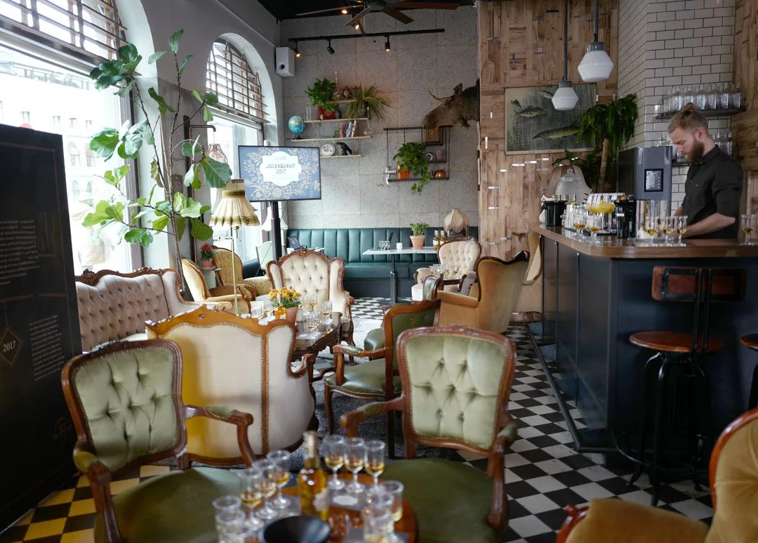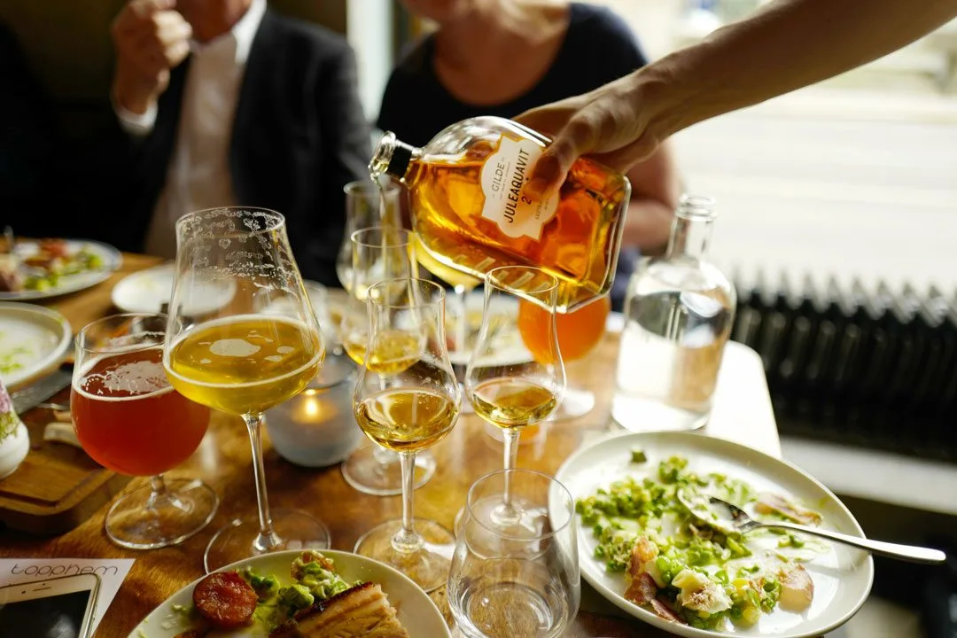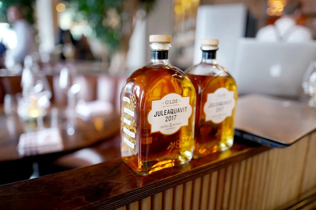 Kjøkkensjef Simon Weinberg ved Bokbacka og Topphem forteller oss hva vi skal spise til årets Gilde Juleaquavit og Gilde Ekstra Modnet Juleaquavit.