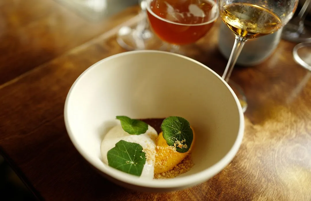 Desserten er kanskje den beste desserten jeg noen gang har smakt. Seriøst god! Gresskaris med hassenøttskum, tindved og nougatsjokolade.