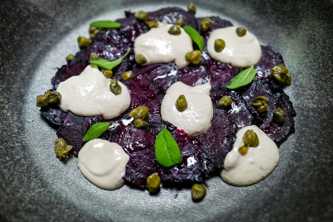 Fordi rødbeter er søte i smaken, lager jeg tonnato-kremen syrligere enn når jeg bruker kalvekjøtt. Kombinasjonen blir magisk, dere. Jeg må si at dette er noe av det beste jeg har smakt. Mannen min er enig. Vi savnet ikke kjøtt i det hele tatt, for rødbetene har den perfekte konsistens og smak til å «lure» deg til å tro at du spiser kjøtt.
