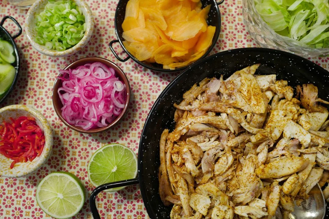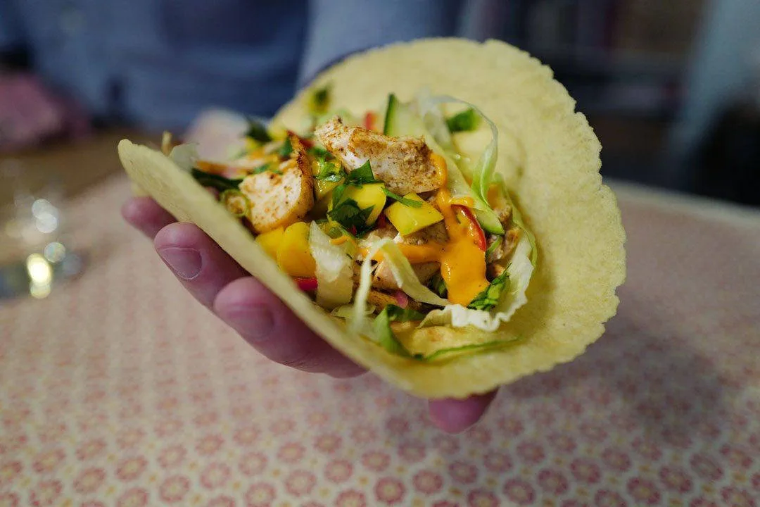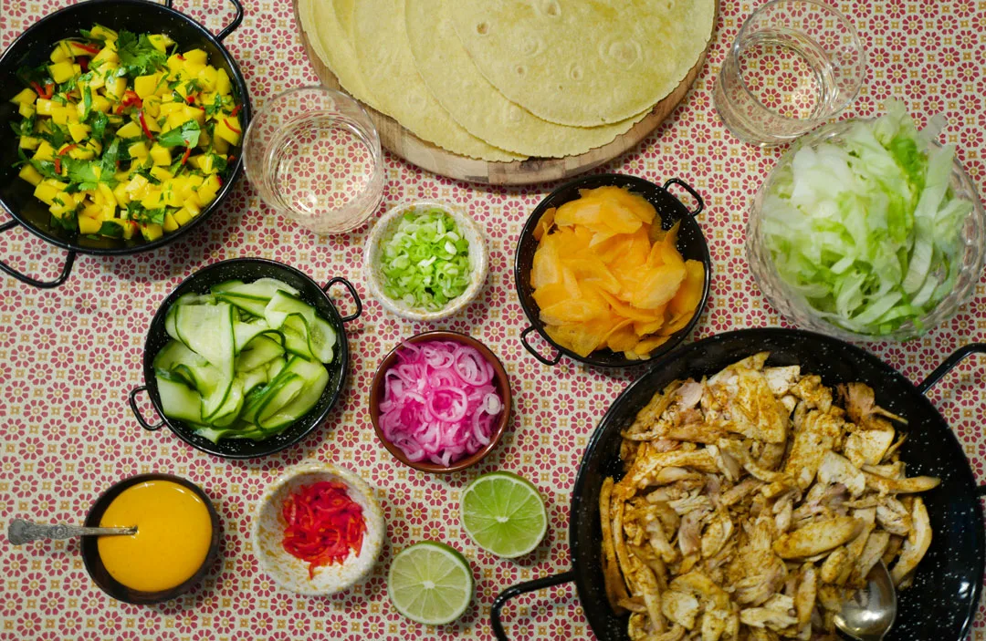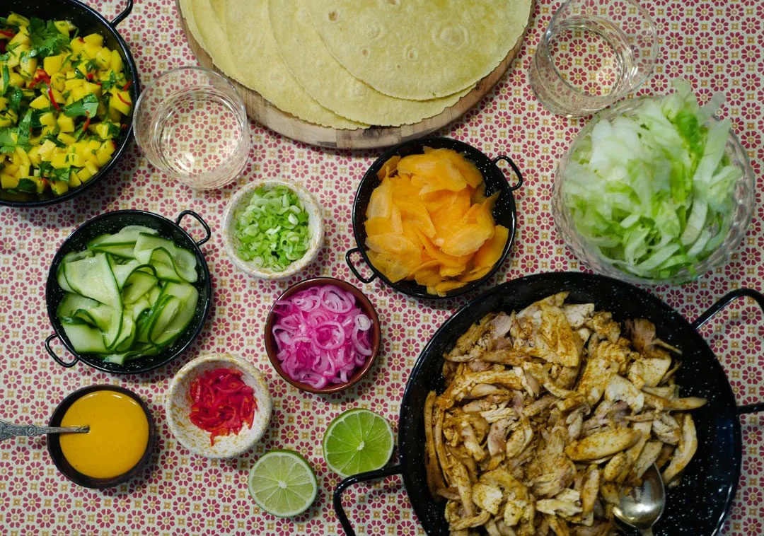 Dette er bare et forslag til hva du kan ha i en kyllingtaco/wrap. Klart du kan bruke tacoskjell. Ja, du kan selvsagt bruke revet ost og mais. Finn frem dine favoritter, men våg å prøv et eller to nye tilbehør. Det kommer du garantert ikke til å angre på.