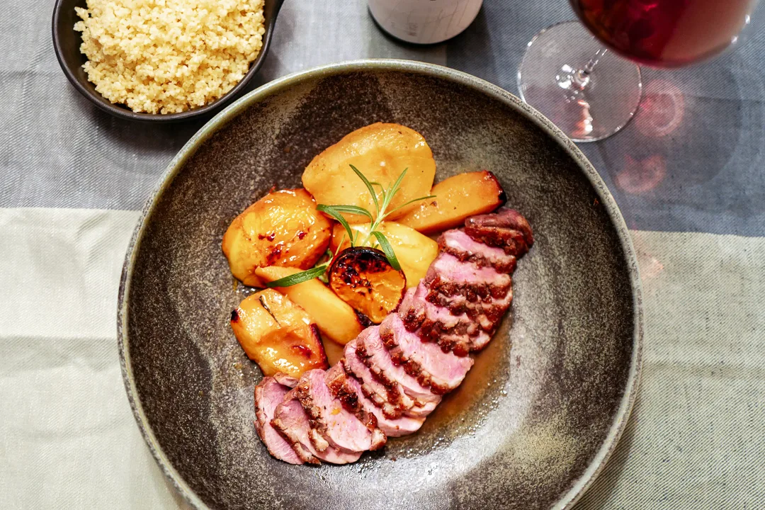 Snu andebrystet og stk videre noen minutter. Etterstek i ovnen på 160 grader i ca 10 minutter. La kjøttet hvile før du skjærer det i tynne skiver.